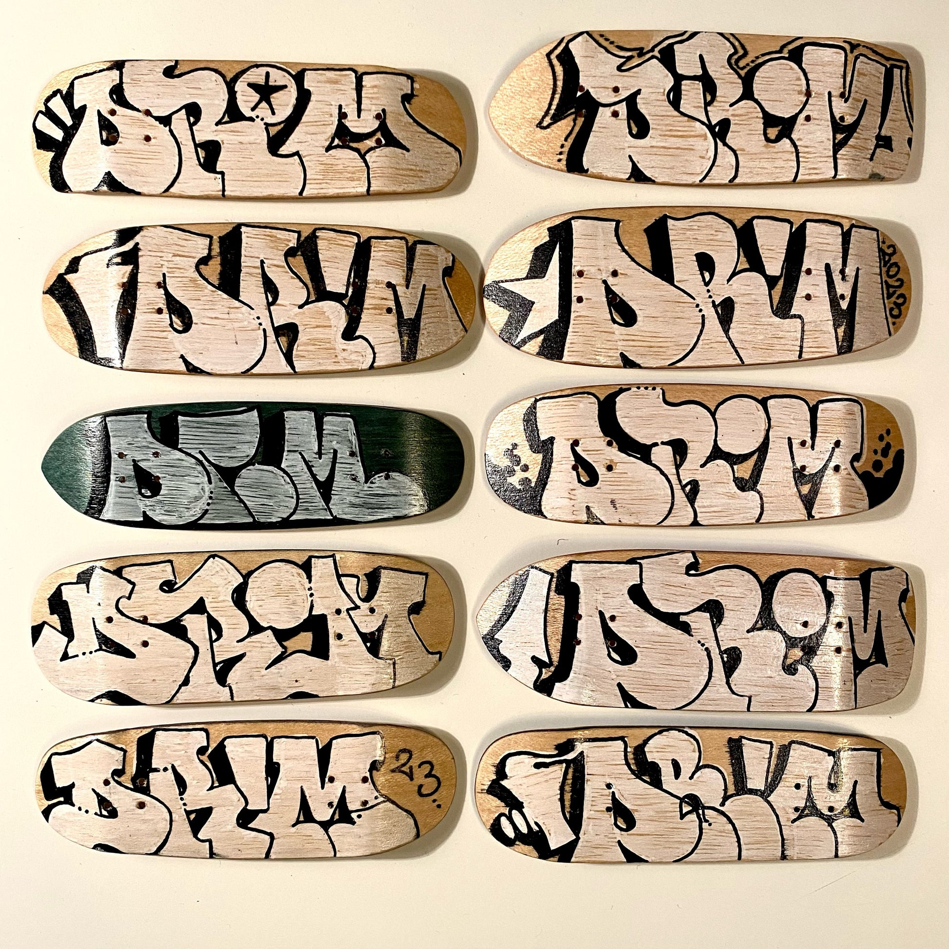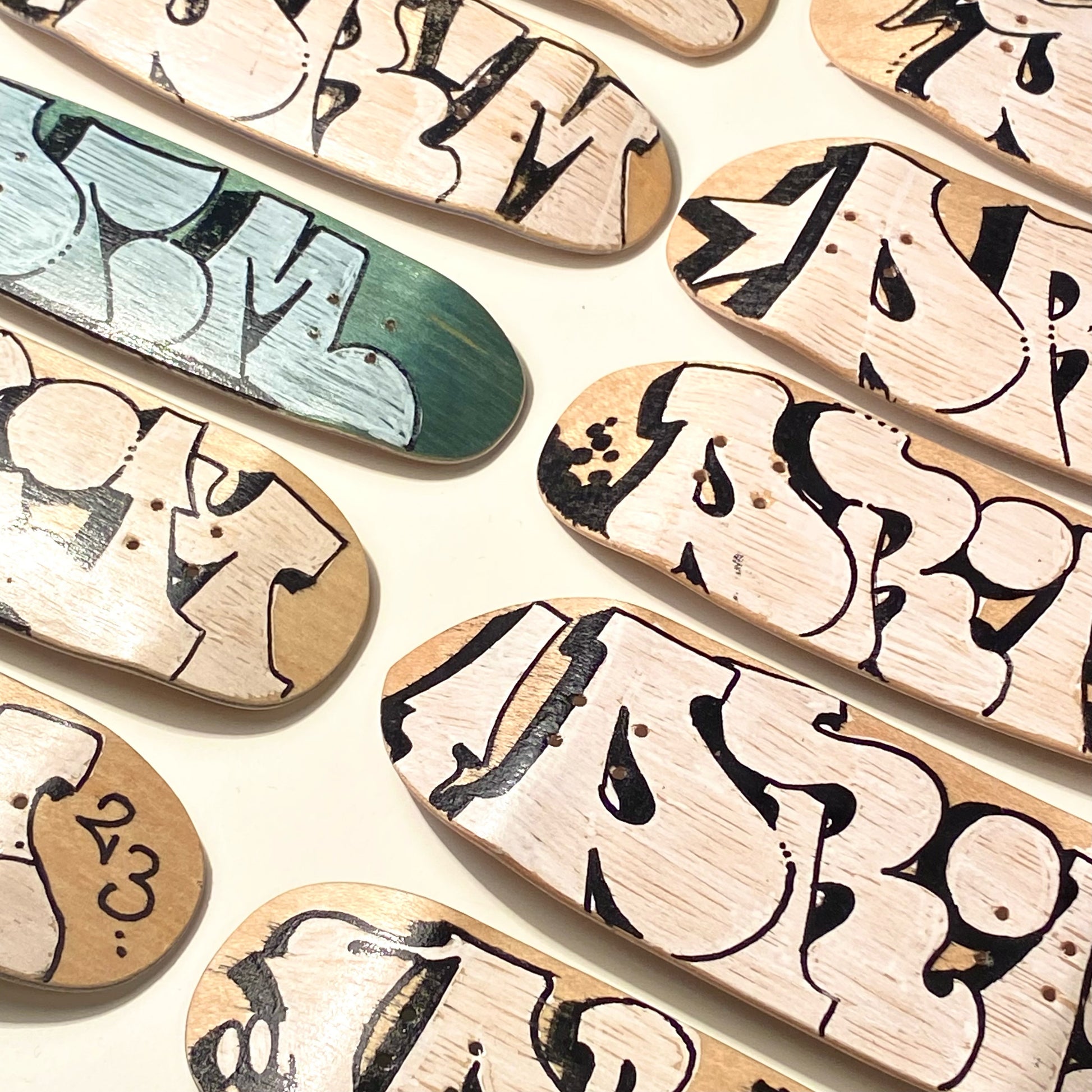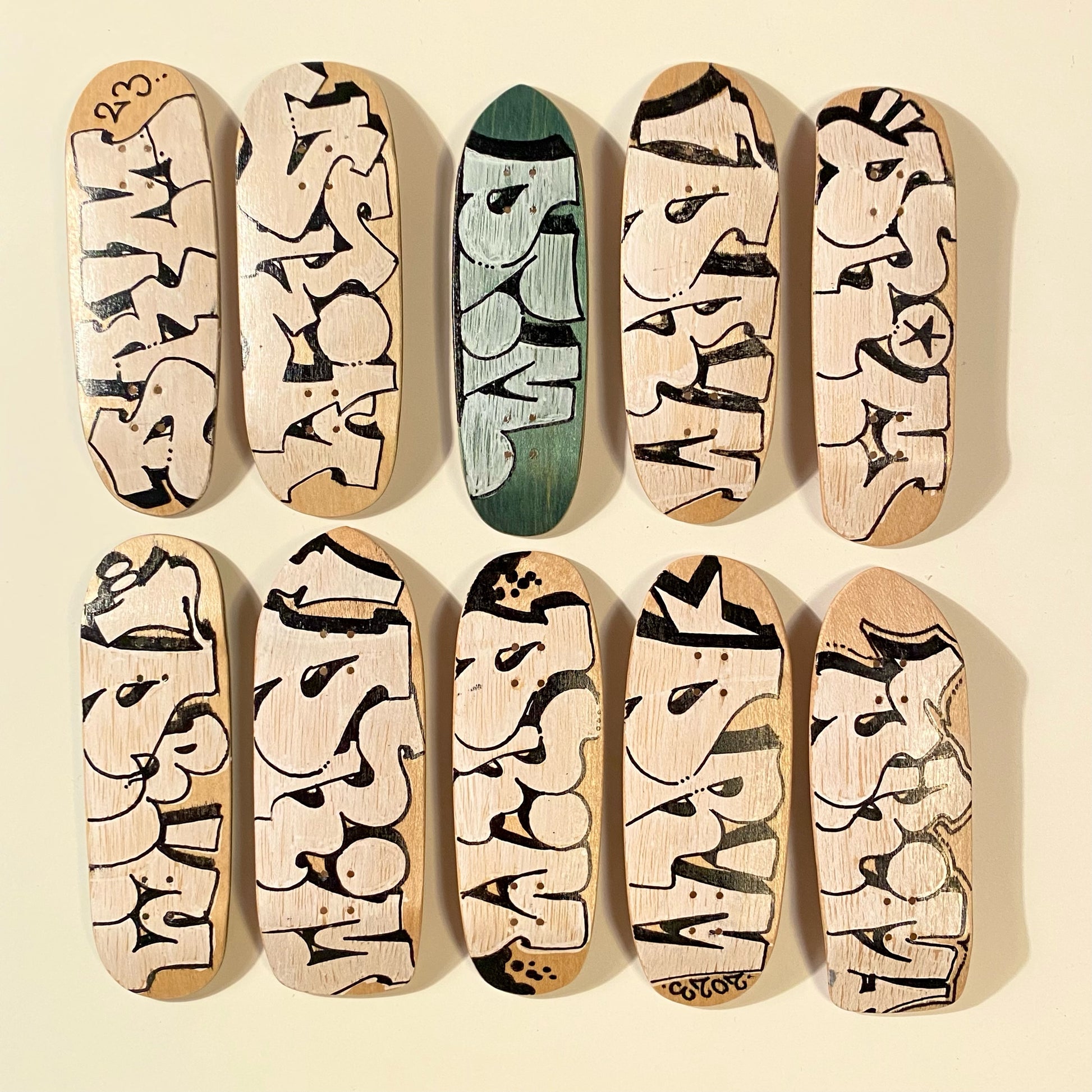 10 hand shaped and hand drawn decks